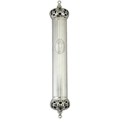 מזוזה ממתכת, גובה בית המזוזה מתאים לקלף שגובהו עד 25 סנטימטרים, המזוזה בצבע