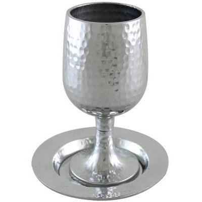 גביע קידוש אלומיניום עם תחתית 15 ס”מ – כסף מרוקע