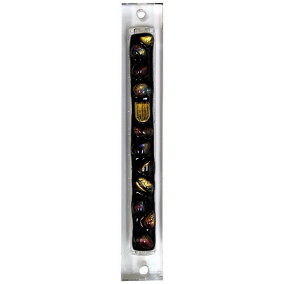 מזוזה מזכוכית, גובה בית המזוזה מתאים לקלף שגובהו עד 10 סנטימטרים, המזוזה בצבע פס קישוט עבודת יד