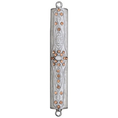 מזוזה ממתכת אמייל, גובה 10 לבן פנינה עם קריסטלים שמפניה