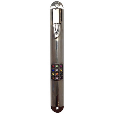 מזוזה מניקל, גובה בית המזוזה מתאים לקלף שגובהו עד 12 סנטימטרים, המזוזה בצבע אבני החושן