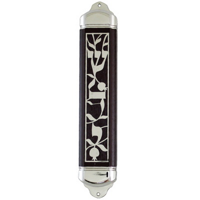 מזוזה מעץ, גובה 12 חום כהה פלקטה רימונים כסף