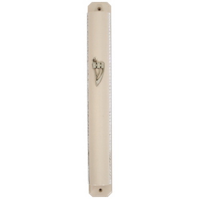 מזוזה מעץ, גובה בית המזוזה מתאים לקלף שגובהו עד 17 סנטימטרים, המזוזה בצבע אופוויט שרשראות עם גב