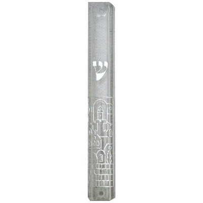 מזוזה מפלסטיק, גובה בית המזוזה מתאים לקלף שגובהו עד 12 סנטימטרים, המזוזה בצבע כסף