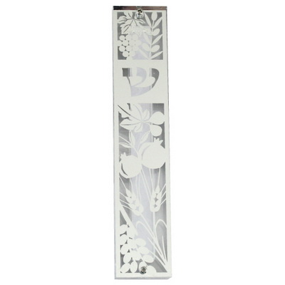 מזוזה מפרספקס, גובה בית המזוזה מתאים לקלף שגובהו עד 12 סנטימטרים, המזוזה בצבע פלקטה – שבעת המינים