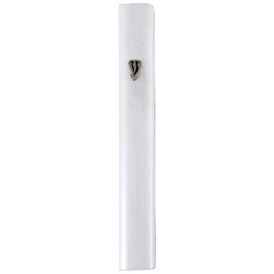 מזוזה מאלומיניום, גובה בית המזוזה מתאים לקלף שגובהו עד 15 סנטימטרים, המזוזה בצבע לבן מתכת