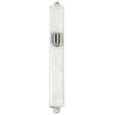 מזוזה ממתכת, גובה בית המזוזה מתאים לקלף שגובהו עד 10 סנטימטרים, המזוזה בצבע פס קישוט צבעוני, רקע