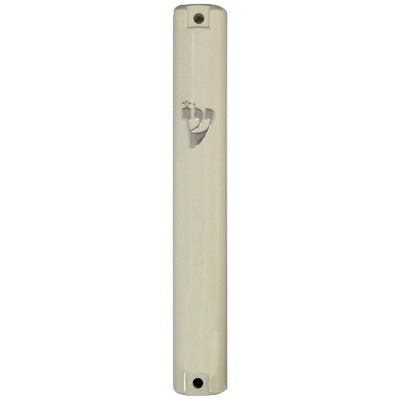 מזוזה מפלסטיק, גובה בית המזוזה מתאים לקלף שגובהו עד 12 סנטימטרים, המזוזה בצבע בז’ כסף פקק גומי