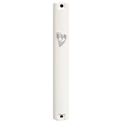 מזוזה מפלסטיק, גובה בית המזוזה מתאים לקלף שגובהו עד 12 סנטימטרים, המזוזה בצבע לבנה כסף פקק גומי